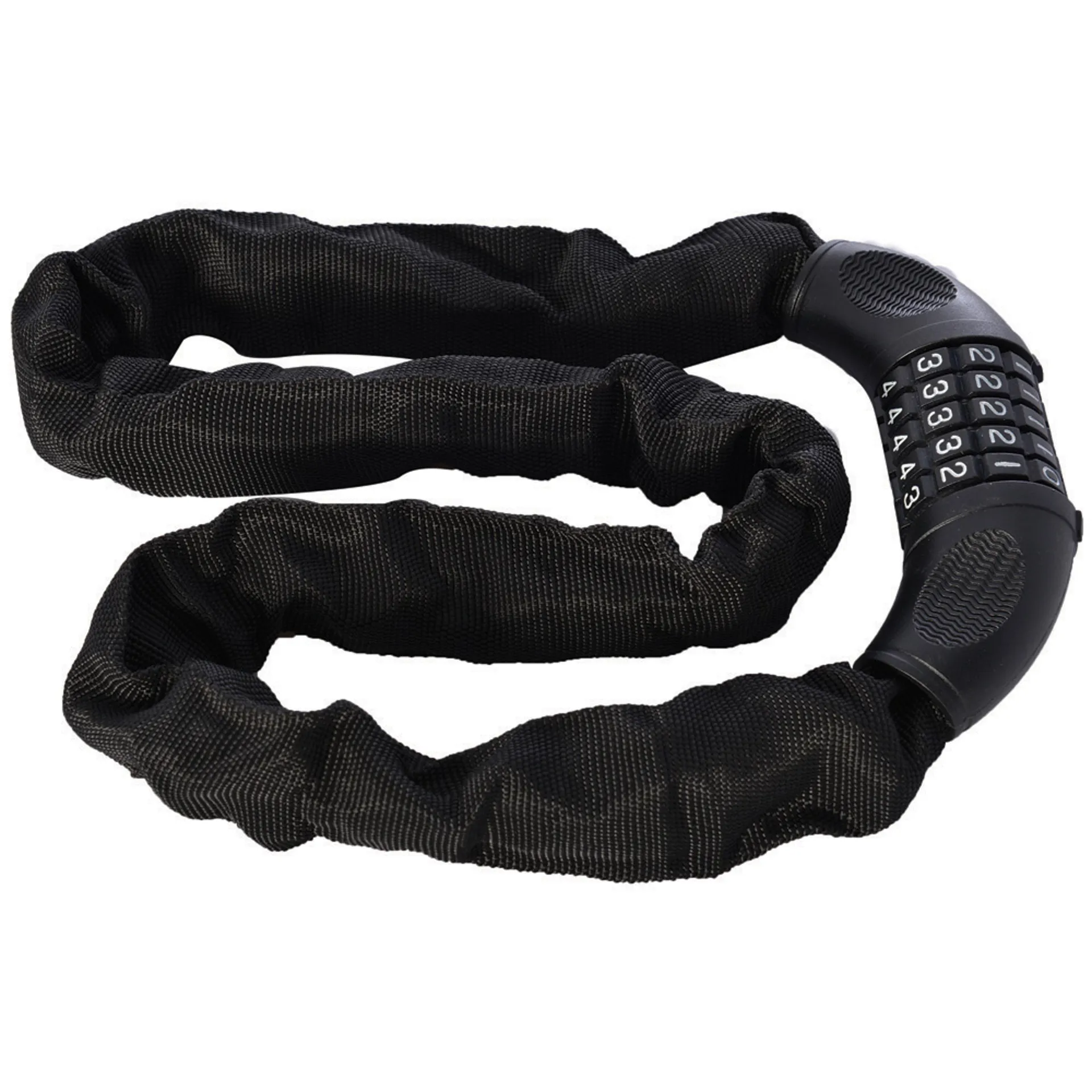 The combi chain 6 is a multi-purpose chain lock. It has a 5-digit resettable combination and comes with a 6mm hardened steel chain which has a protective cover.