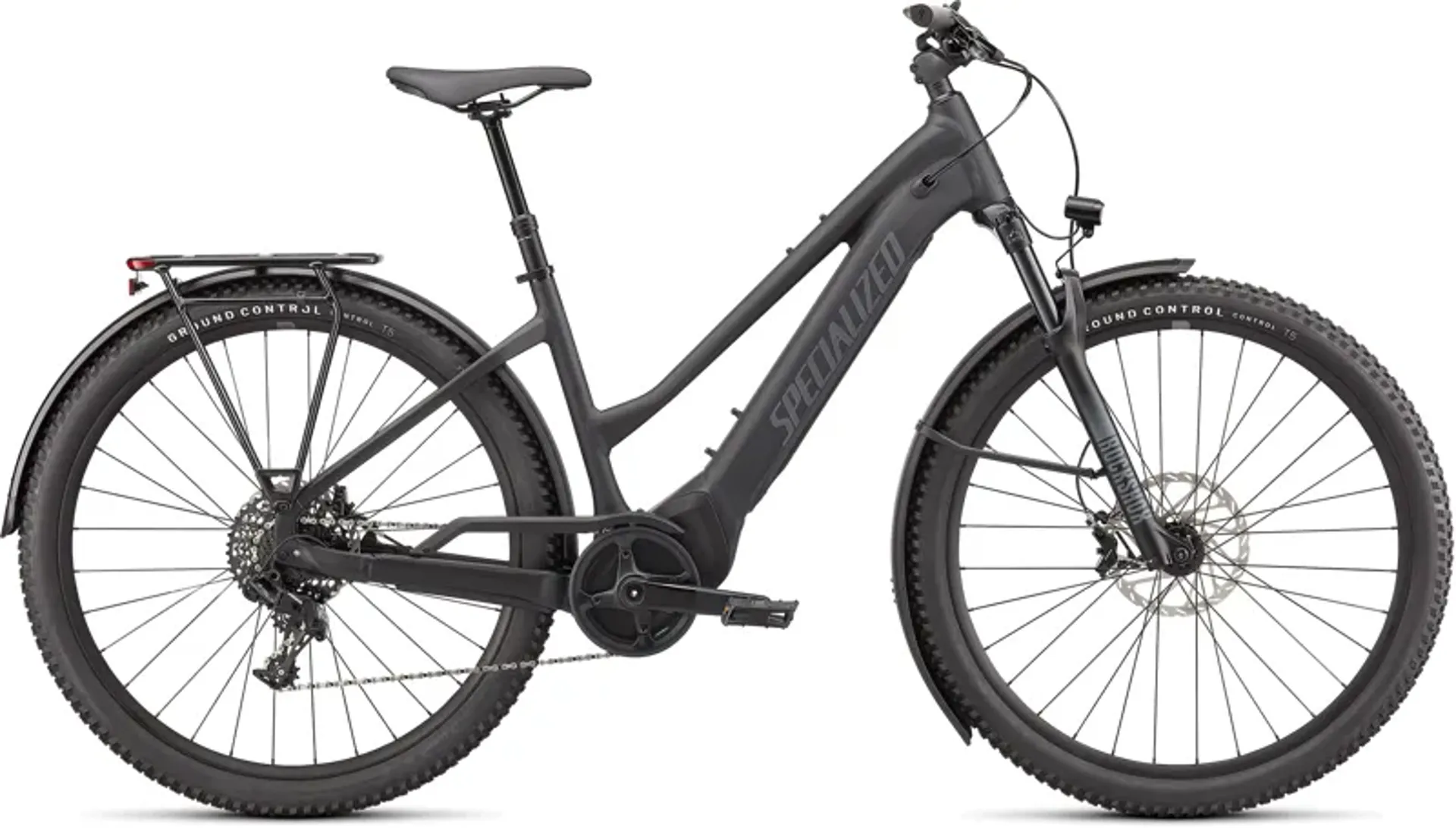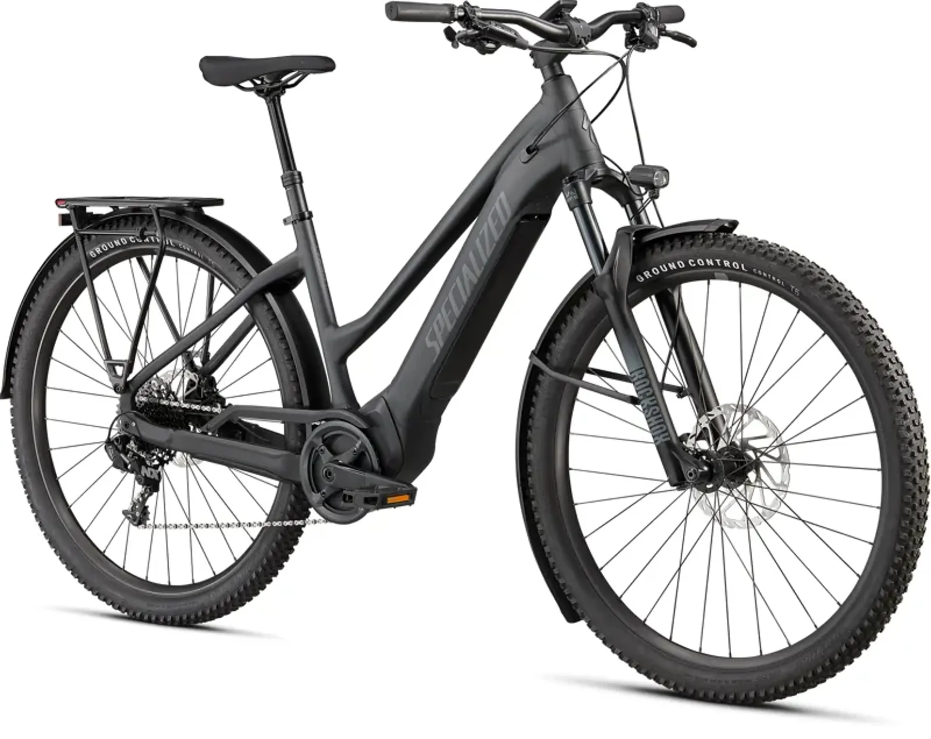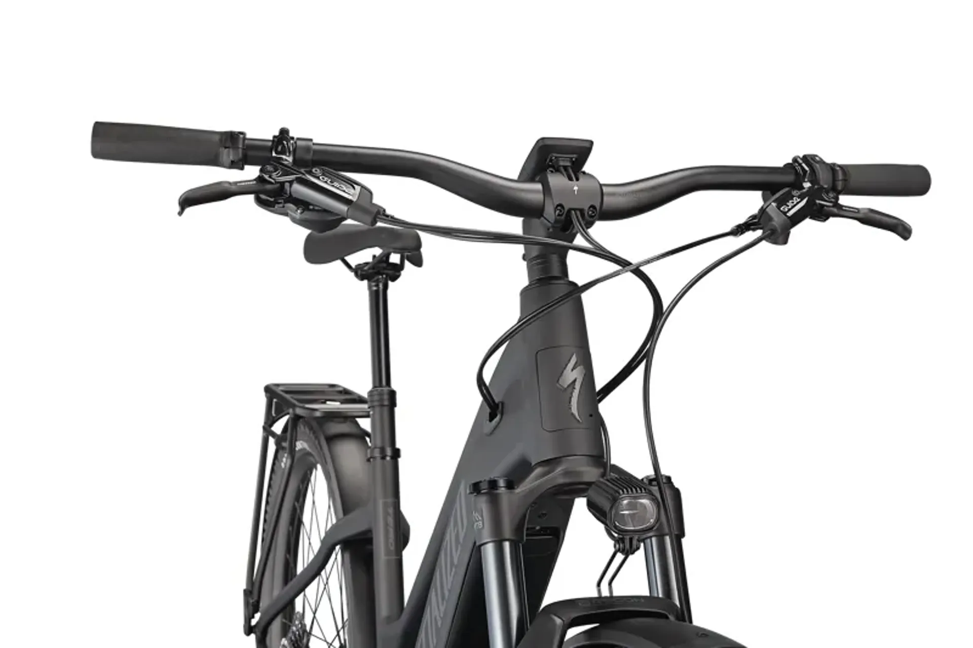 E5 Aluminum, bottom bracket motor mount, fully integrated & lockable downtube battery, internal cable routing, lock and front rack mount